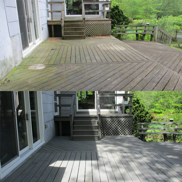 Here is an example of our amazing restoration products at work. This deck was restored using the DRP Deck&Wood Restorer followed by the DRPĀ Wood Brightener and finished with DRP Deck&Wood Stain Barnegat Gray tone.